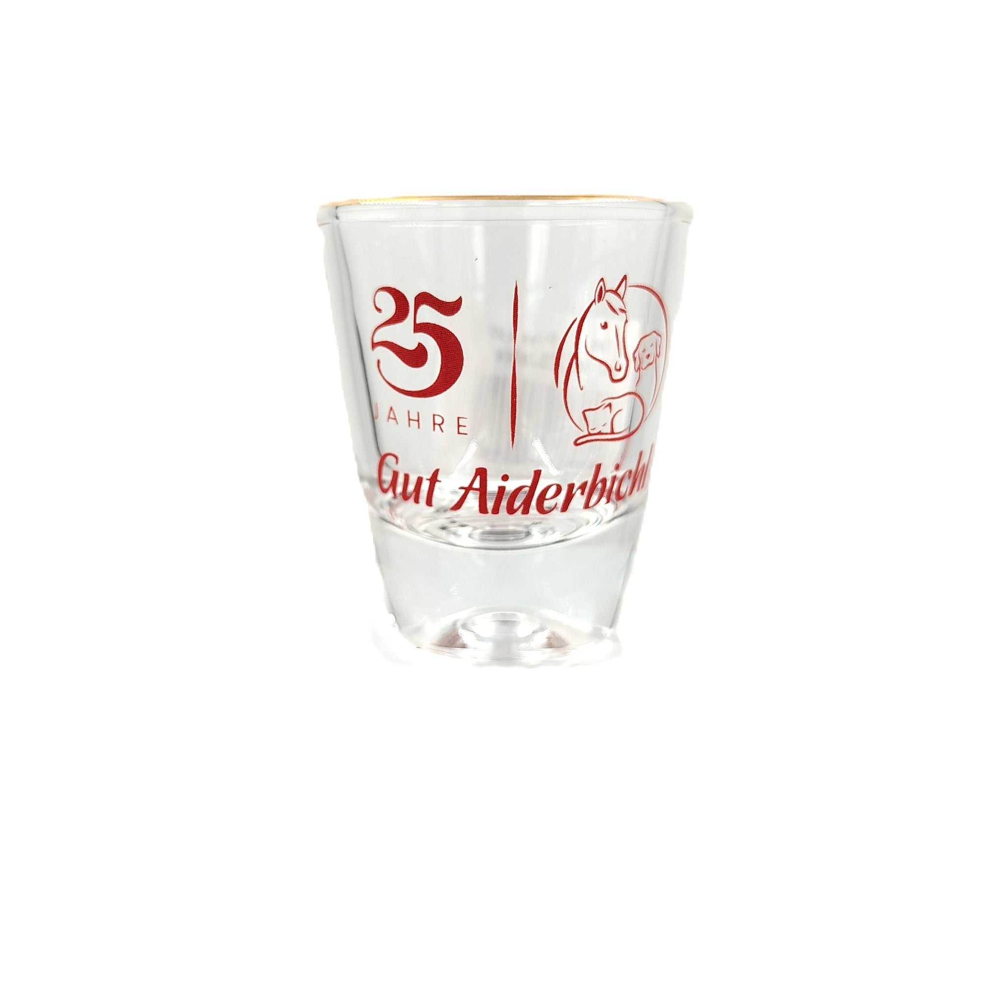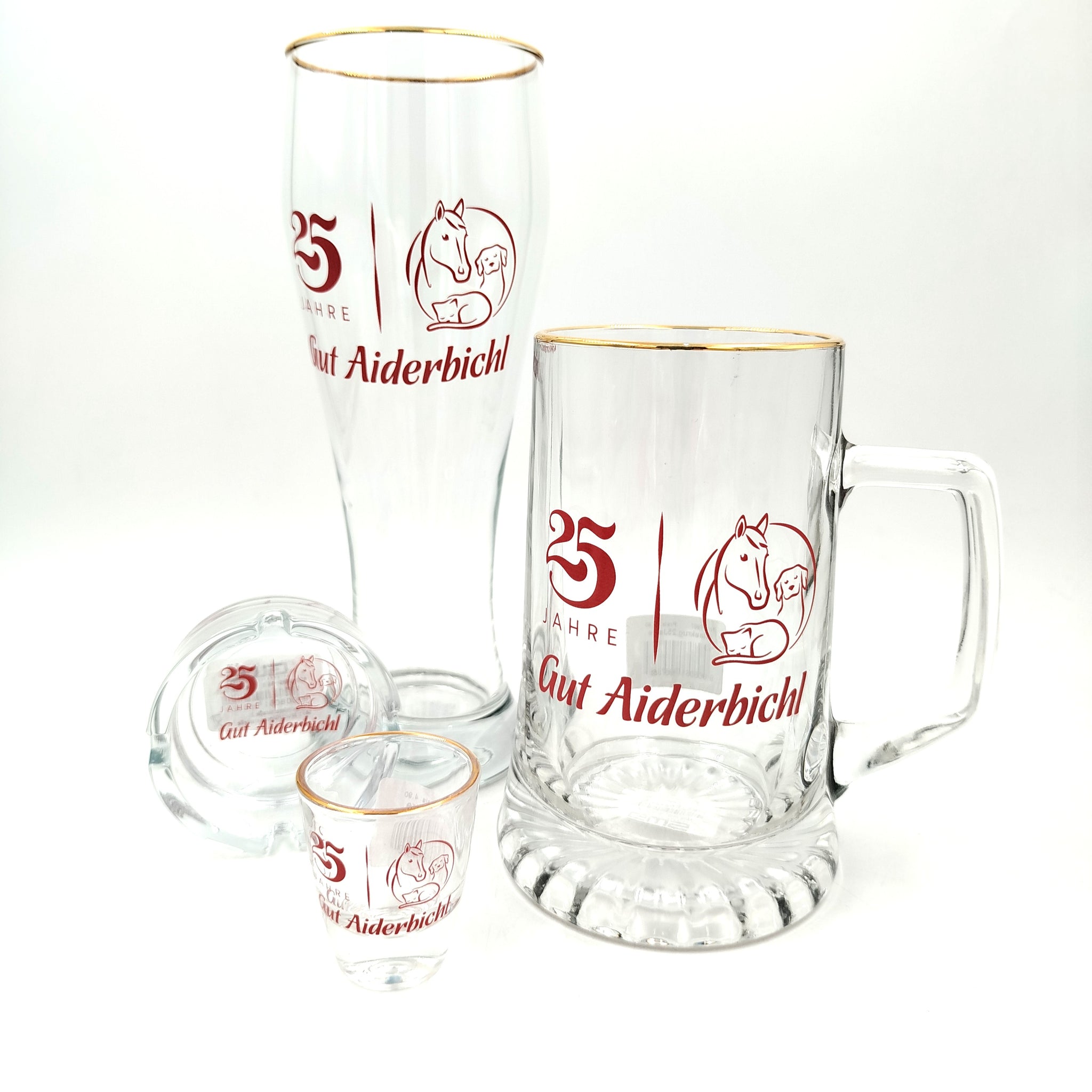 tolle neue Serie aus Glas mit Goldrand, 25 Jahre Gut Aiderbichl LOGO, bestehend aus: